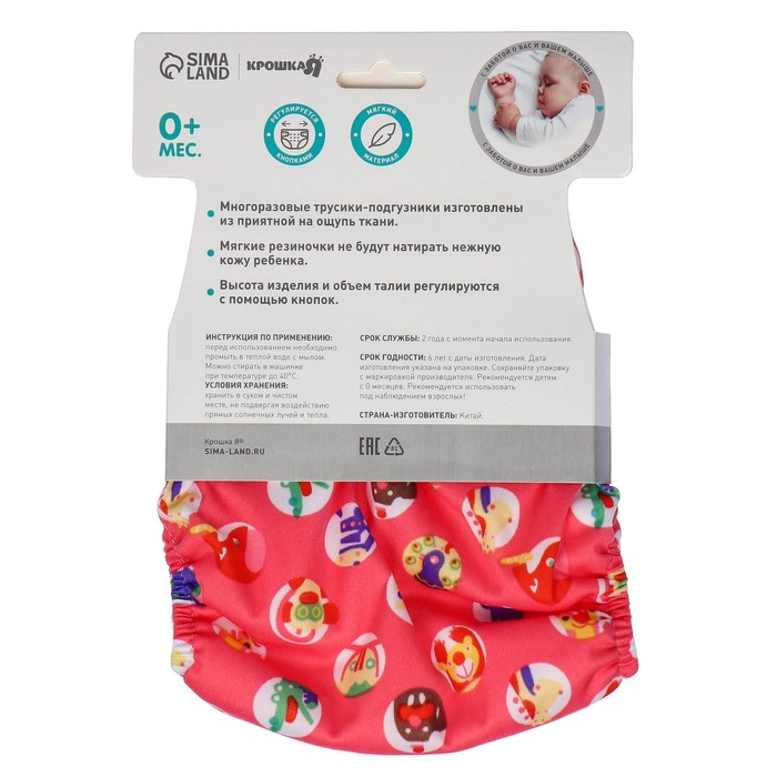 Многоразовый подгузник «Веселые зверята», 3-15 кг, цвет красный, Крошка Я