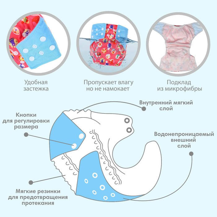 • Размер подгузника универсальный, подходит для детей от 3 до 15 кг, от рождения до 3 лет;