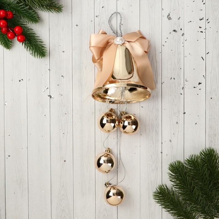 Украшение новогоднее "Уютная сказка" колокольчик бант бусина, 9х29 см, золото