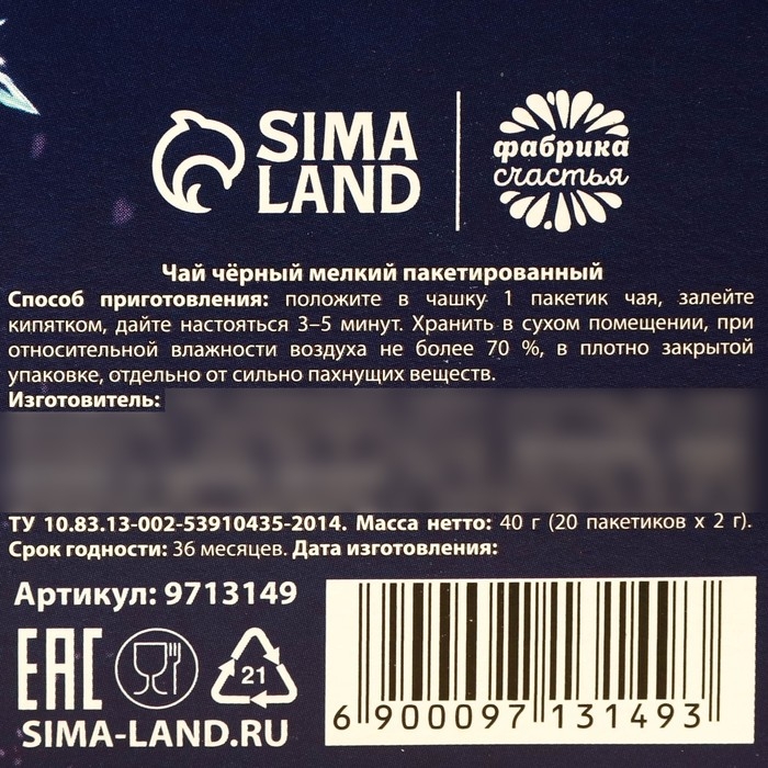 Масса нетто: 40 г (20 пакетиков х 2 г).
