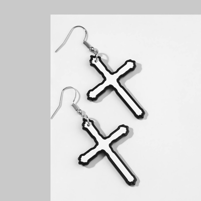 Серьги акрил «Крестики» контур, цвет чёрно-белый в серебре