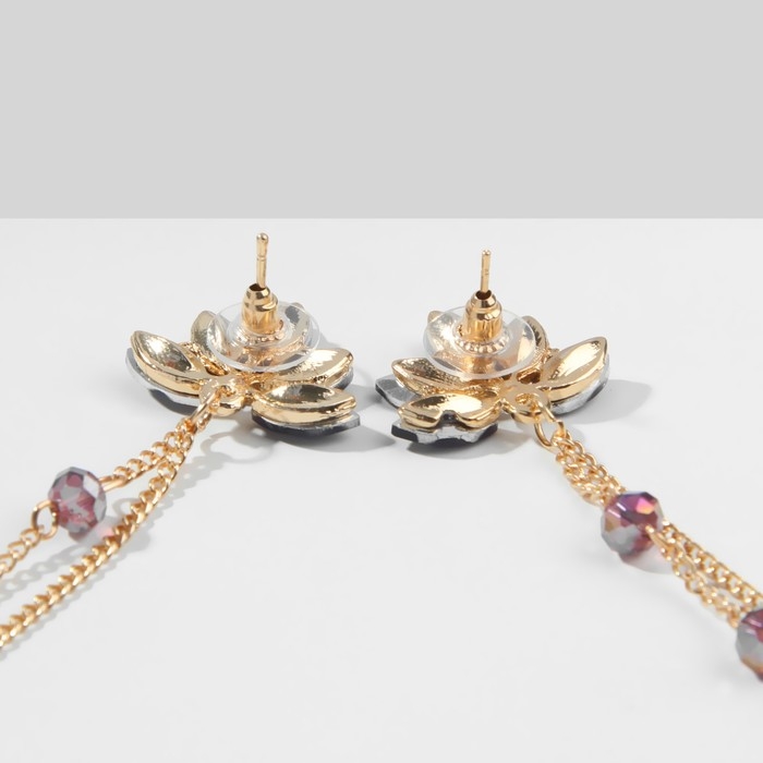 Серьги висячие со стразами «Рассвет» цветочный, цвет бело-фиолетовый в золоте, 11,5 см