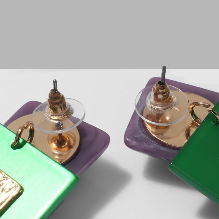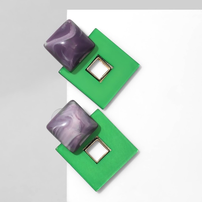 Серьги акрил «Квадро», цвет зелёно-фиолетовый в золоте