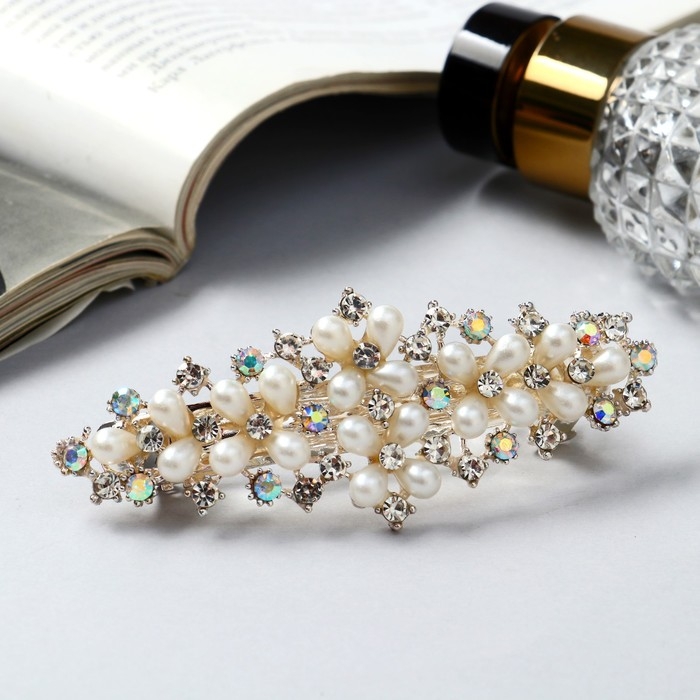 Заколка-автомат для волос "Гелая" классика, 10 см, серебристо-белый