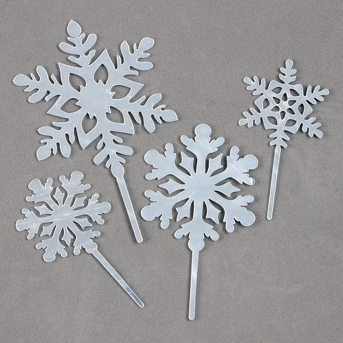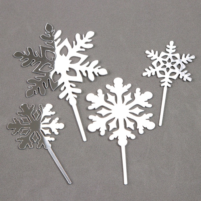 Новый год! Набор топперов «Снежинки», 4 шт., цвет серебро