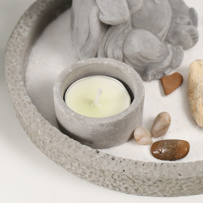 Сад камней Дзен d=16,5 см Хотей "ничего не слышу", со свечой, серый