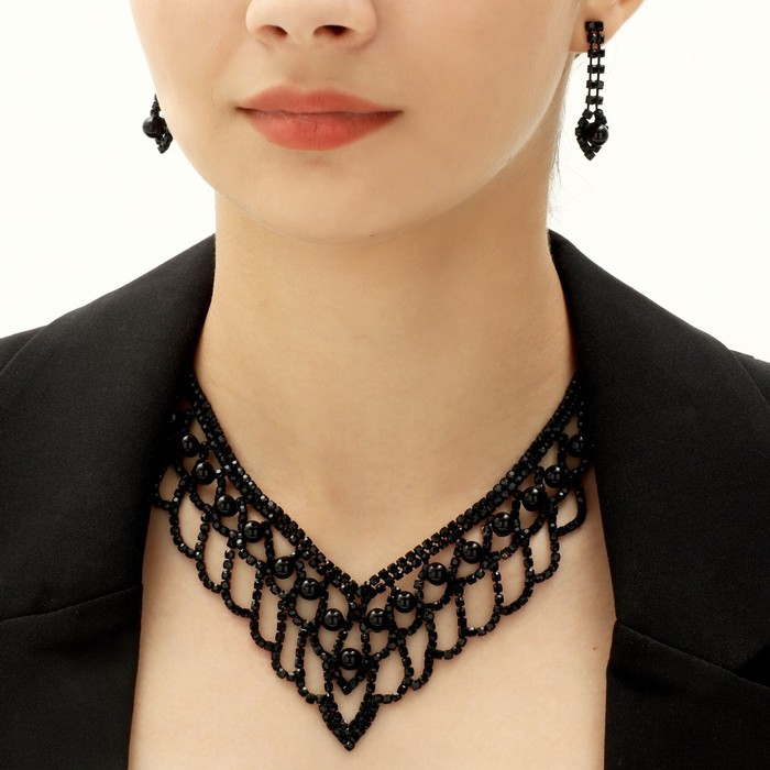 Набор 2 предмета: серьги, колье «Вернисаж» шарики, цвет чёрный, 30 см