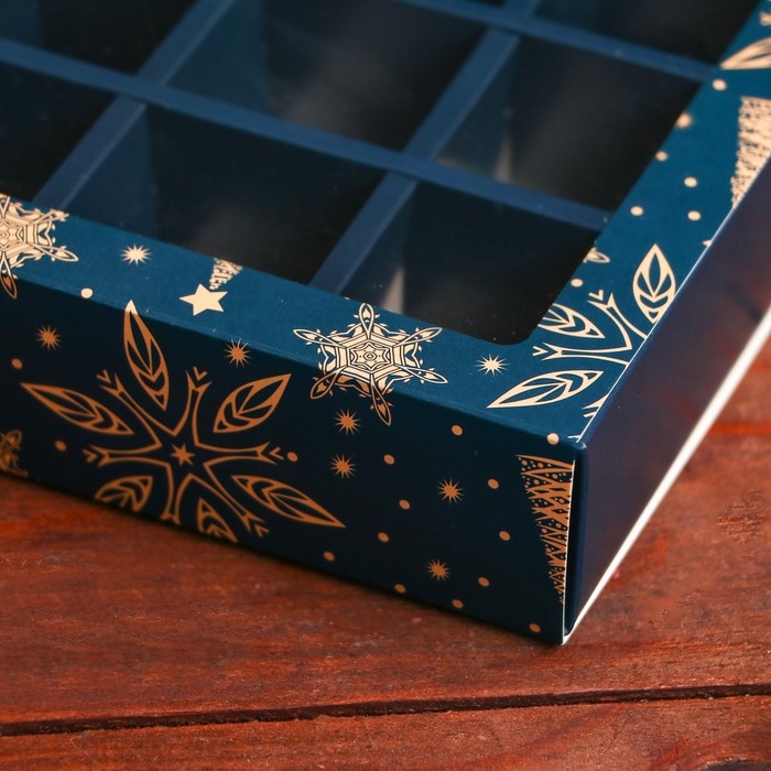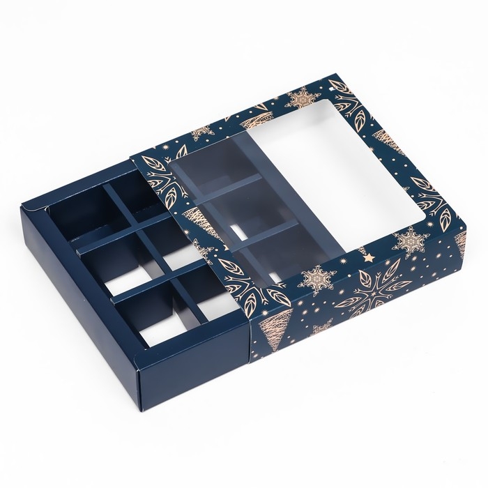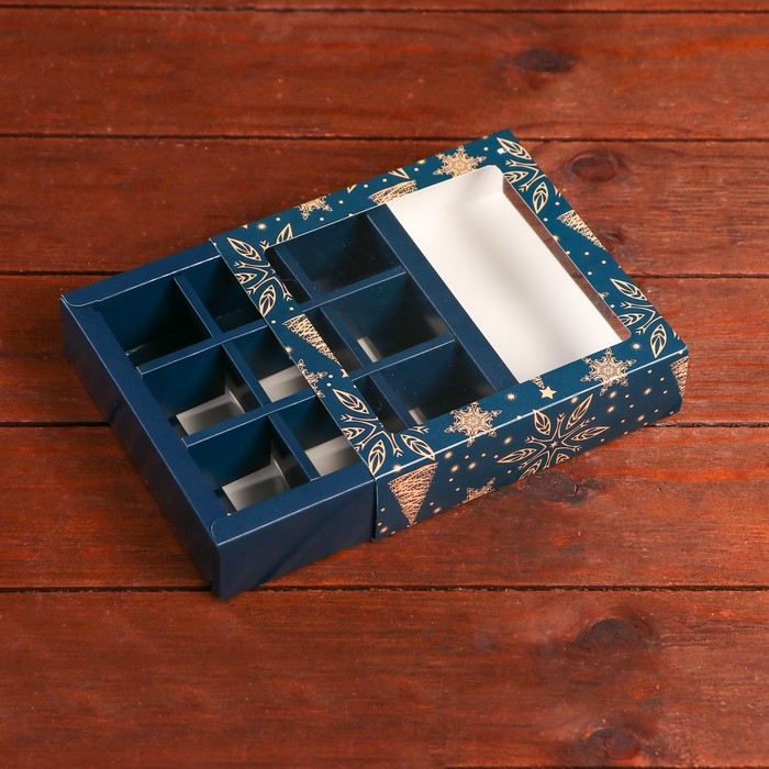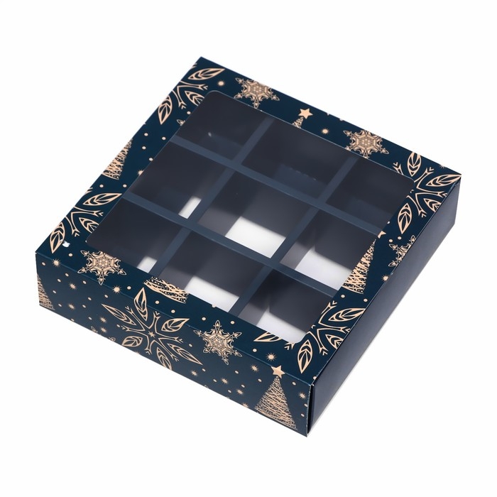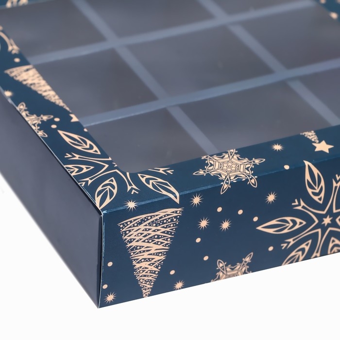 Новый год. Коробка под 9 конфет "Праздничное волшебство", 13,7 х 13,7 х 3,5 см, кондитерская упаковка