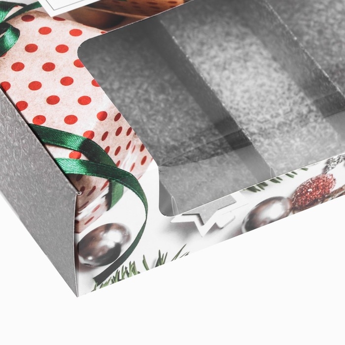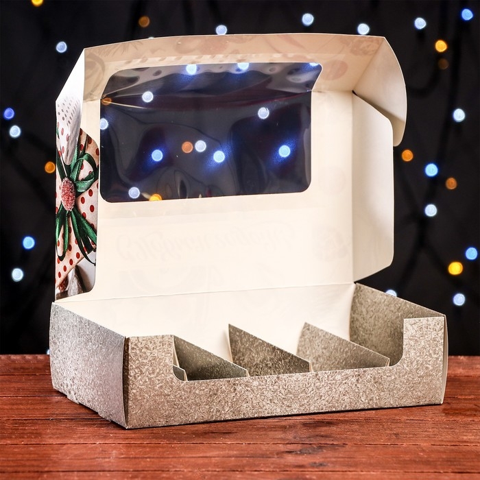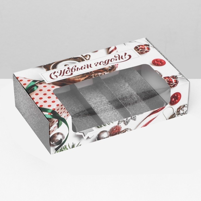 Новый год. Кондитерская упаковка под 5 эклеров "Новогодние подарки", 25,2 х 15 х 6,6 см