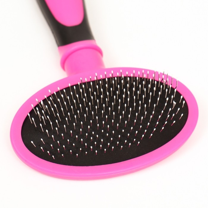 Пуходерка пластиковая мягкая с закругленными зубьями, средняя, 9,5 х 16 см, розовая