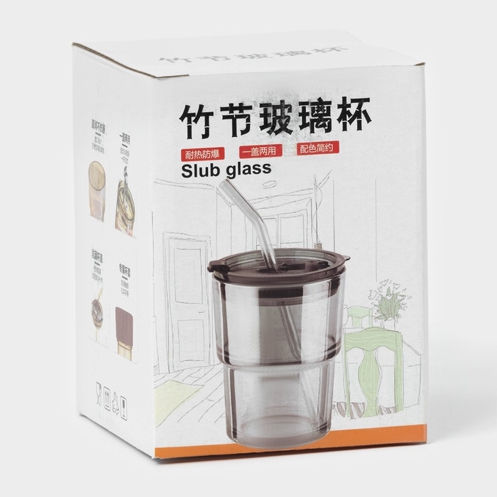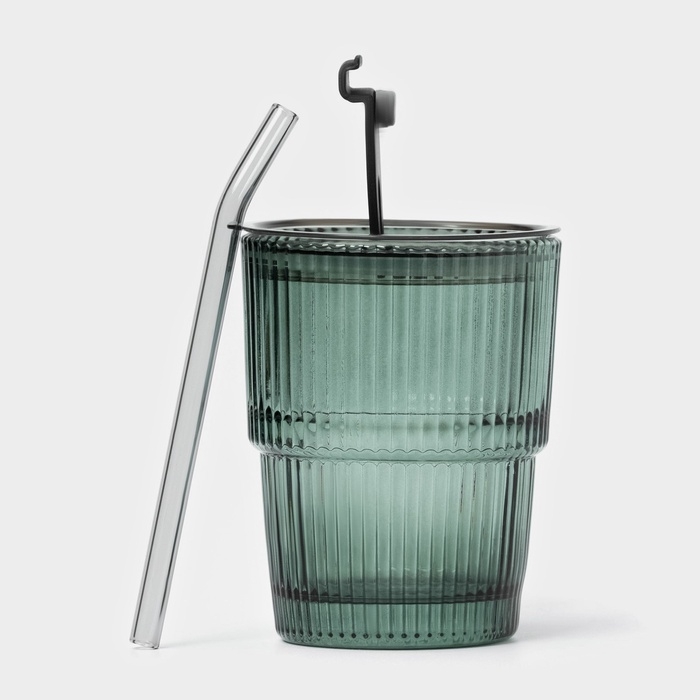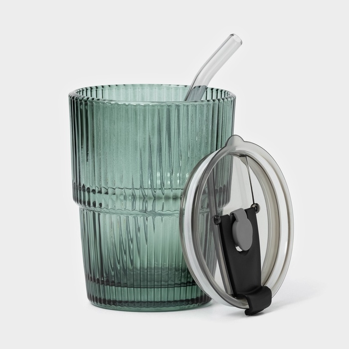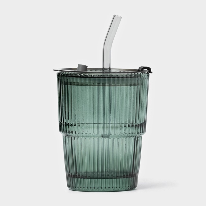 Стакан стеклянный с крышкой и трубочкой «Вино Верде», 350 мл, цвет зелёный