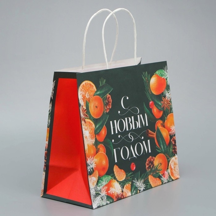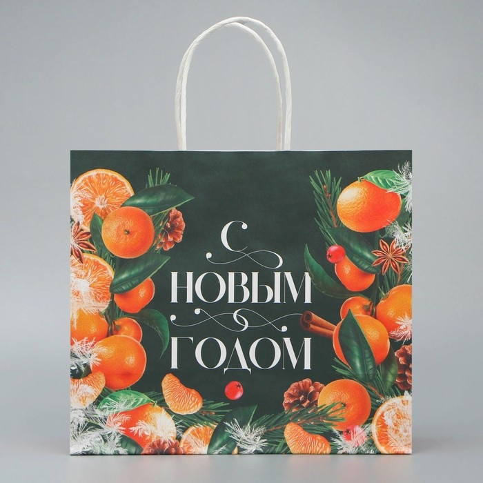 Пакет подарочный новогодний крафтовый «Новогодняя суета», 25 х 22 х 12 см, Новый год