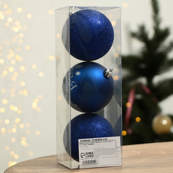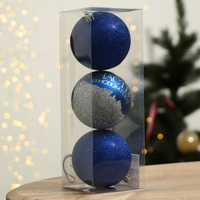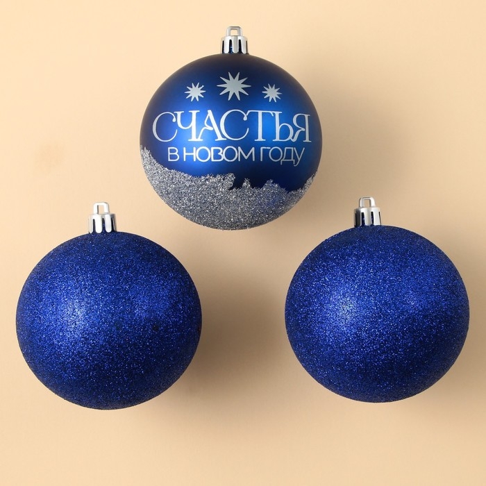 Шары ёлочные новогодние «Мечтай!», на Новый год, пластик, d=8, 3 шт., цвет синий с серебряным