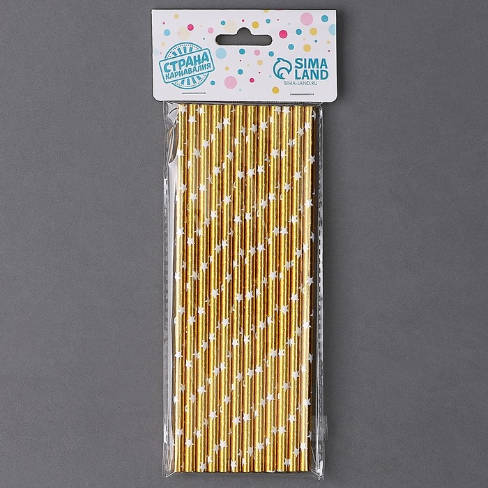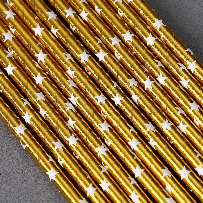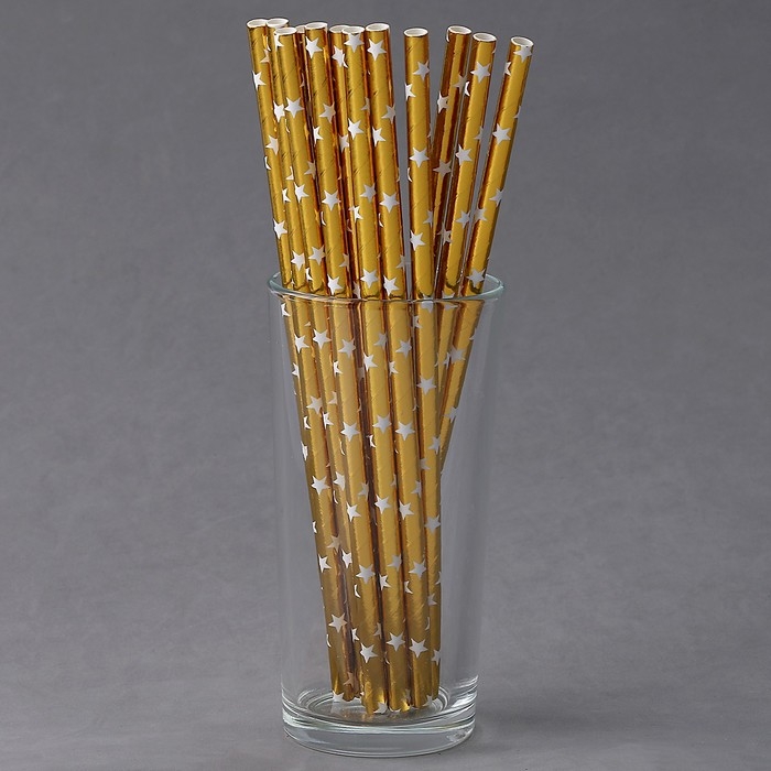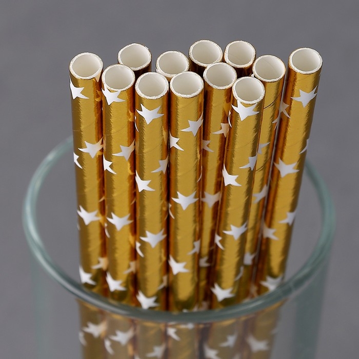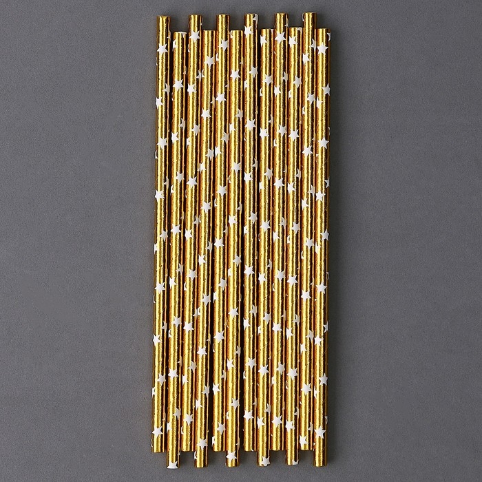 Трубочки для коктейля «Звёзды», набор 12 шт., цвет золото