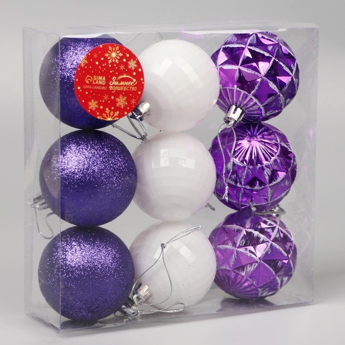 Набор шаров пластик d-5,5 см, 9 шт "Рузи" грани, белый фиолетовый