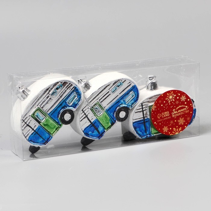 Набор украшений пластик 3 шт "Фургончики" 4х7 см, синий