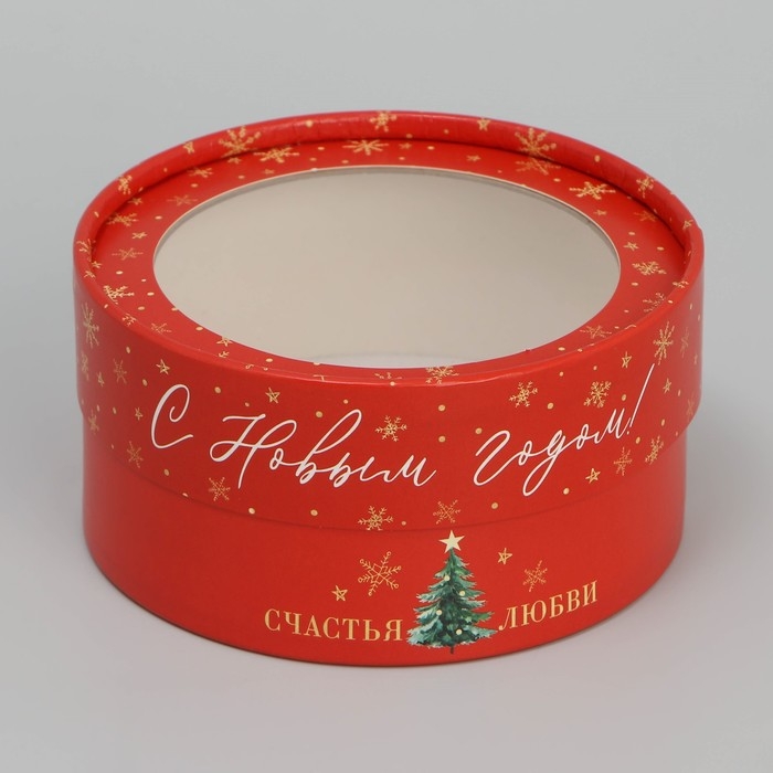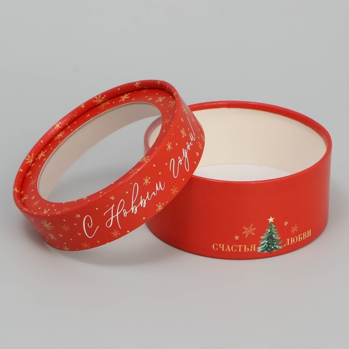 Коробка для макарун тубус с окном «Тепла и уюта», 12 х 12 х 5 см, Новый год