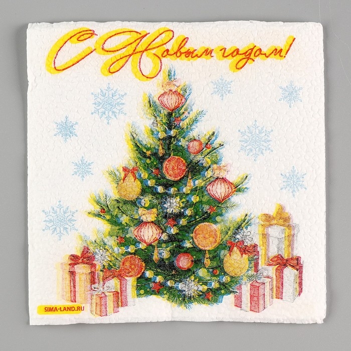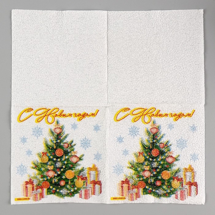 Новогодние салфетки бумажные «Ёлка», однослойные, 24х24 см, 20 шт., на новый год