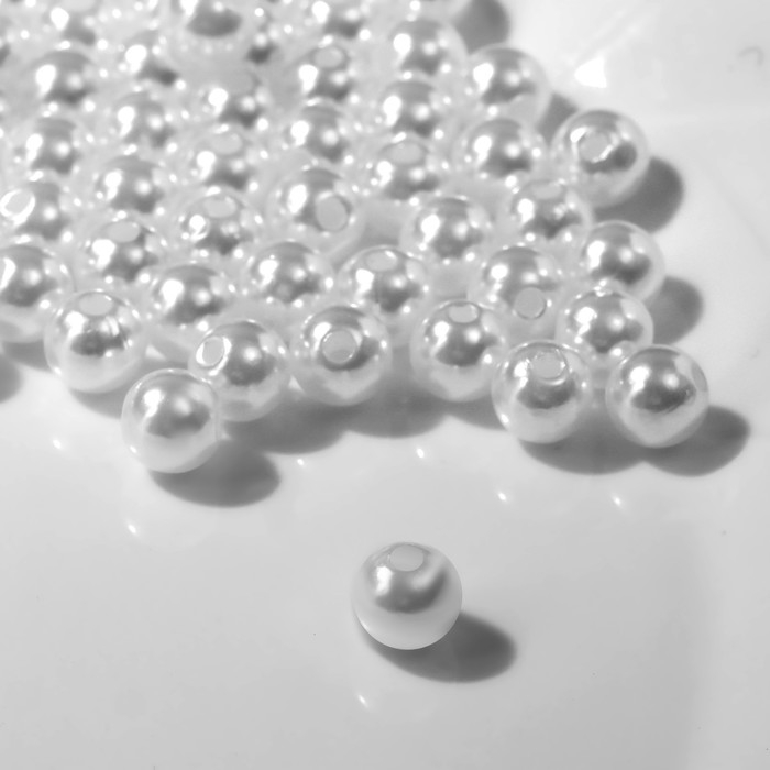 Бусины пластиковые «Жемчуг», шарик, d=1 см, набор 10 г, белые