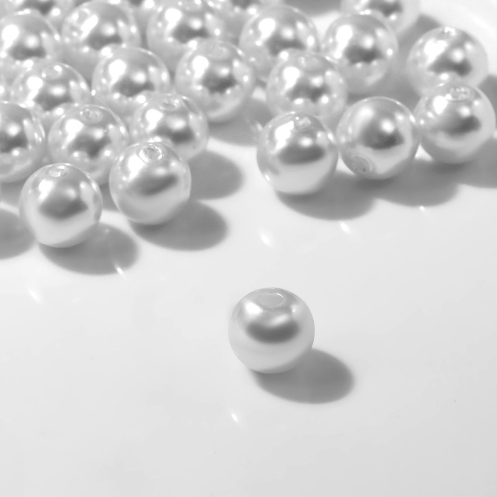Бусины №10 «Жемчуг» (набор 50 шт), отверстие сквозное, цвет белый