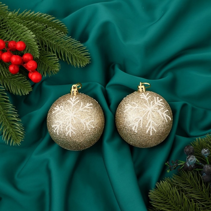 Набор шаров пластик d-8 см, 2 шт "Снежок" бело-золотой
