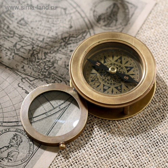 Компас "Компас и лупа" латунь 7х7х2,5 см