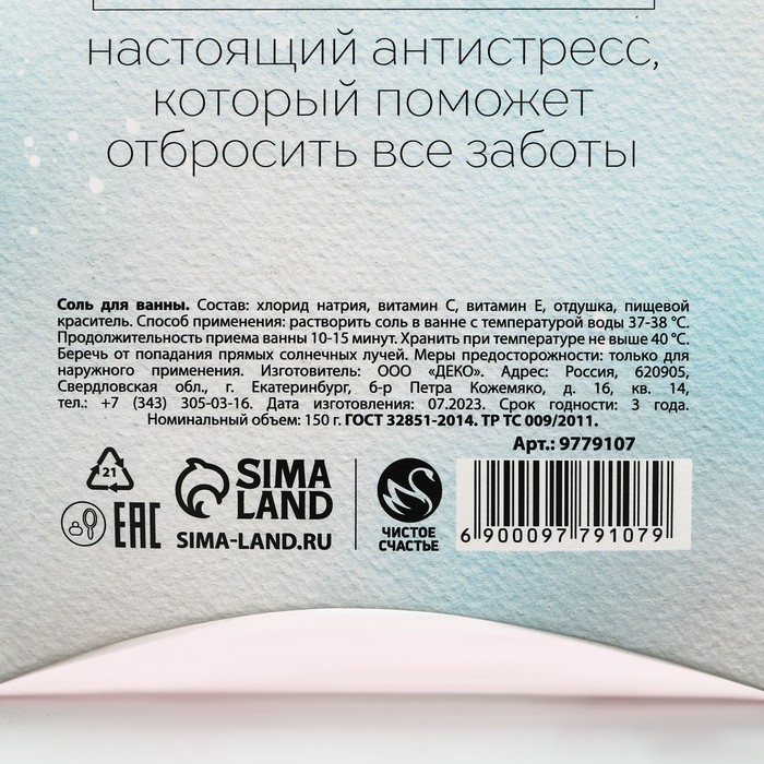 Соль для ванны «Счастья!», 150 г, аромат снежного пломбира, Новый Год