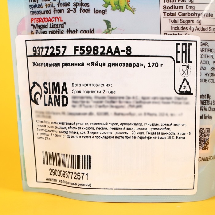 Жевательная резинка "Яйца динозавра", 170 г