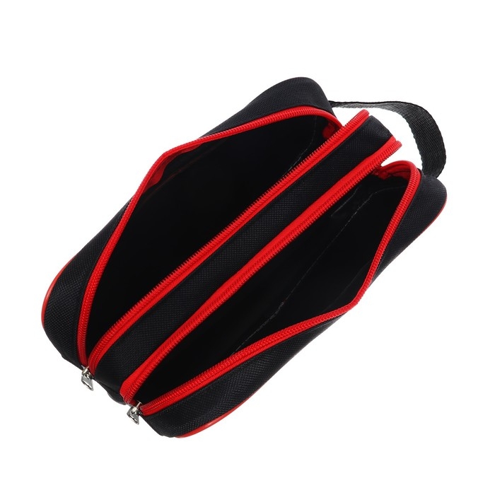 Пенал мягкий 2 отделения, 100 х 220 х 70 мм, объёмный, с ручкой,Calligrata Black, "Черно-красный"