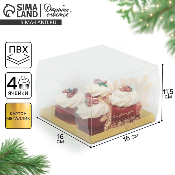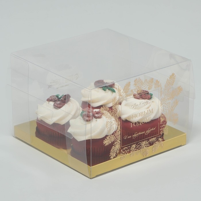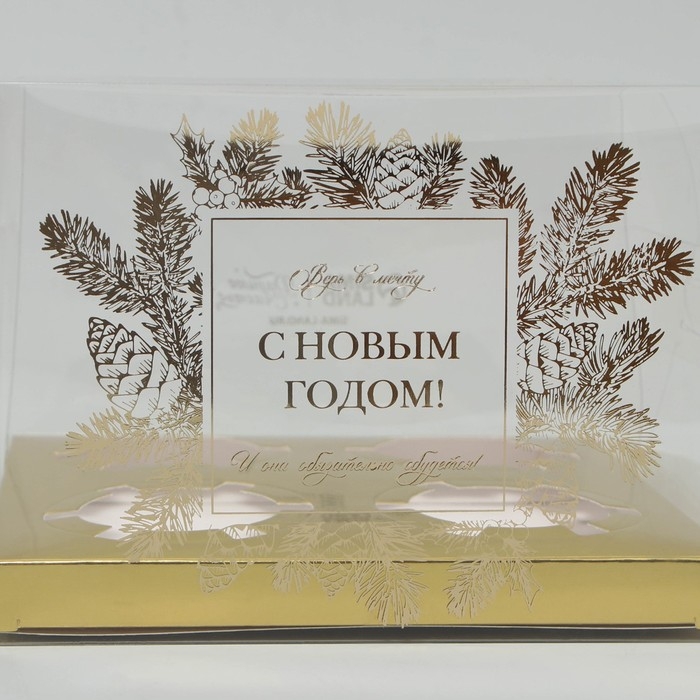 Коробка для капкейка «Верь в мечту», золото, 16 х 16 х 11.5 см, Новый год