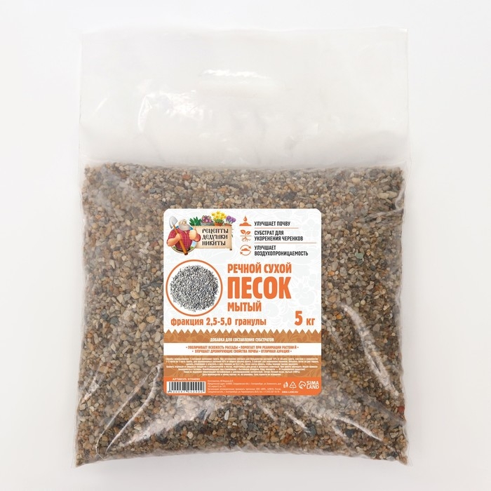 Речной песок "Рецепты дедушки Никиты", сухой, фр 2,5-5,0, гранулы, 5 кг