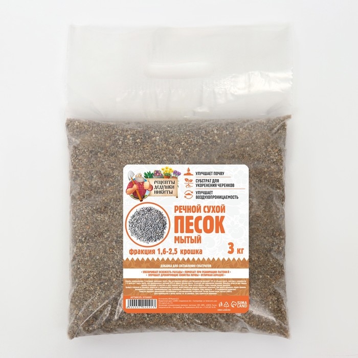 Речной песок "Рецепты дедушки Никиты", сухой, фр 0,8-1,6, 3 кг