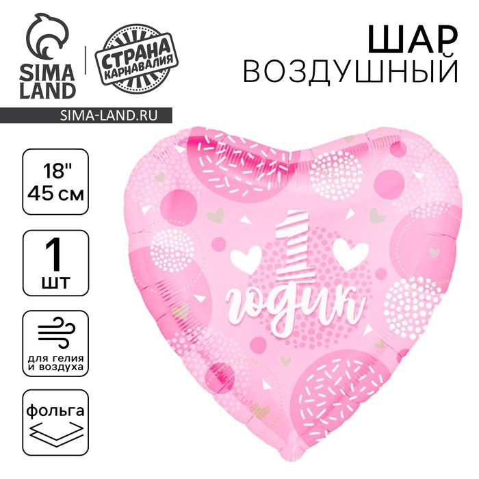 Воздушный шар фольгированный 18" «1 годик. Дочка», сердце