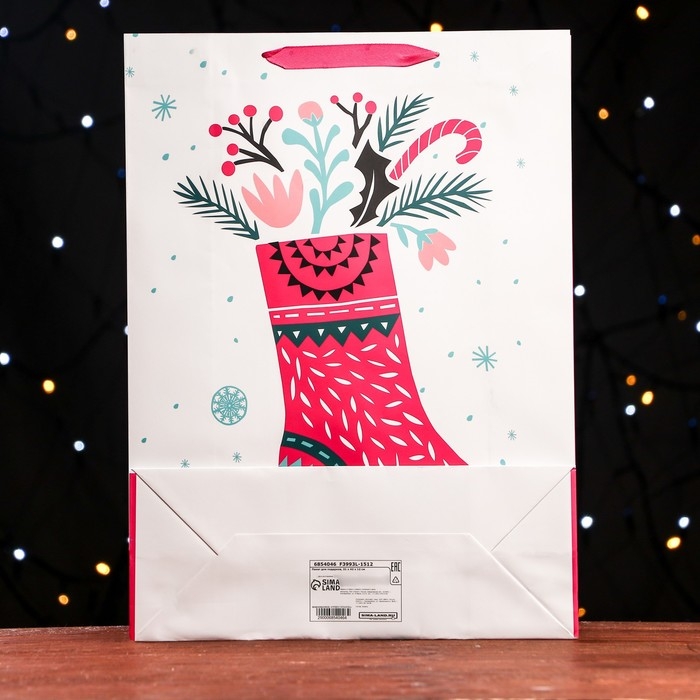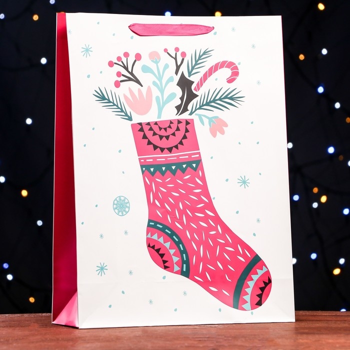 Новый год. Пакет ламинированный «Праздничный носок» 32 х 12 х 42 см