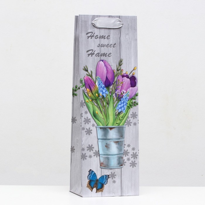 Пакет ламинированный под бутылку "Тюльпаны" 12х36х9