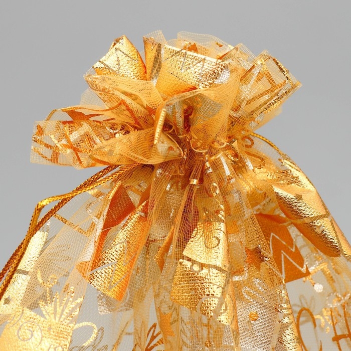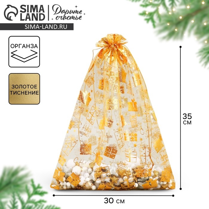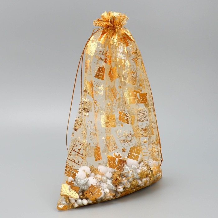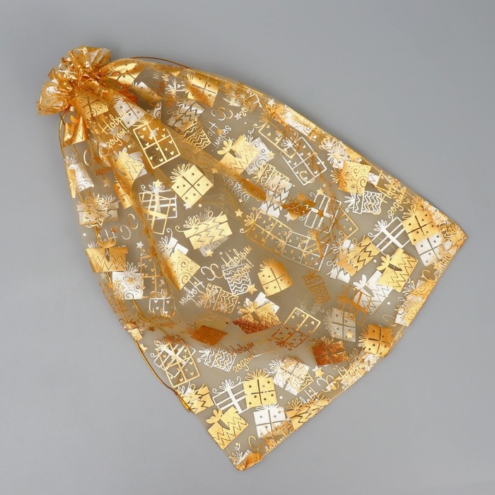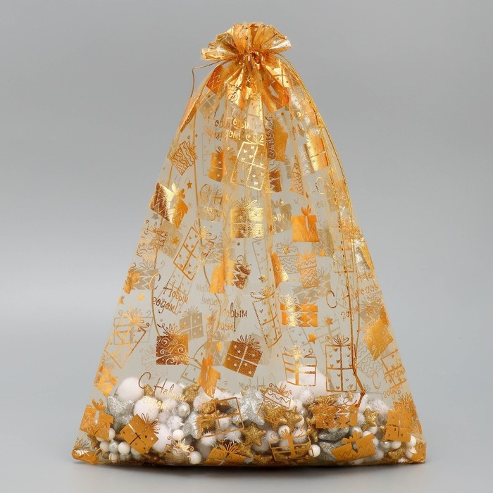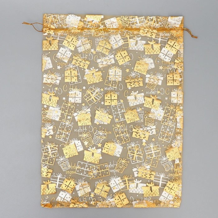 Мешочек подарочный органза «Золотые подарочки», 30 х 40 см +/- 1.5 см, Новый год