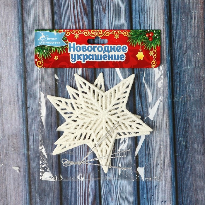 Украшение ёлочное "Звезда в полоску люкс" (набор 3 шт) 9х9 см, белый