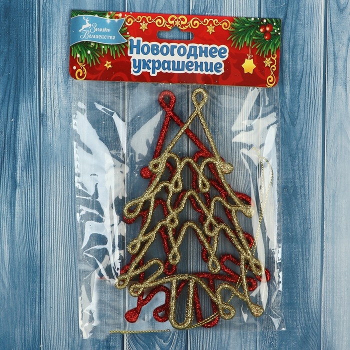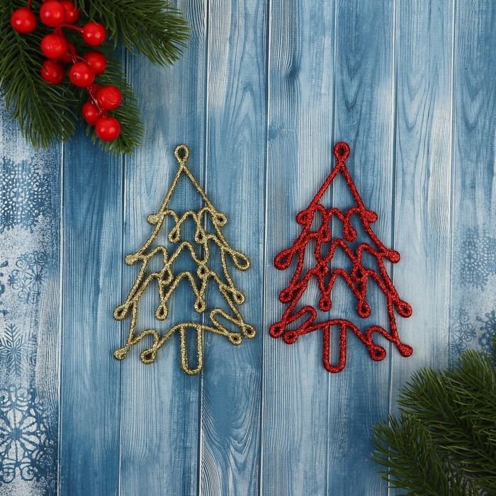 Украшение ёлочное "Ёлочка люкс" (набор 2 шт) 7х13 см, красный золото