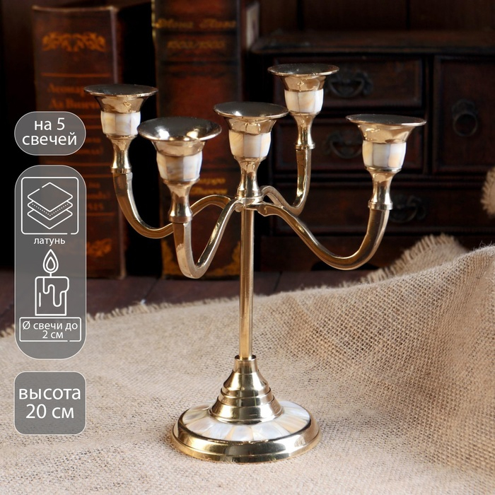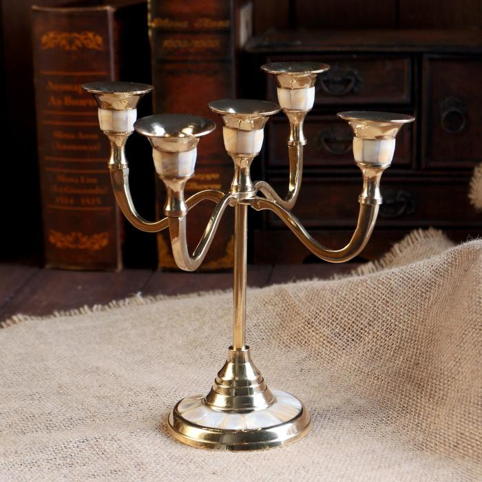 Подсвечник "Джираль" на 5 свечей латунь, перламутр 20х20х20 см