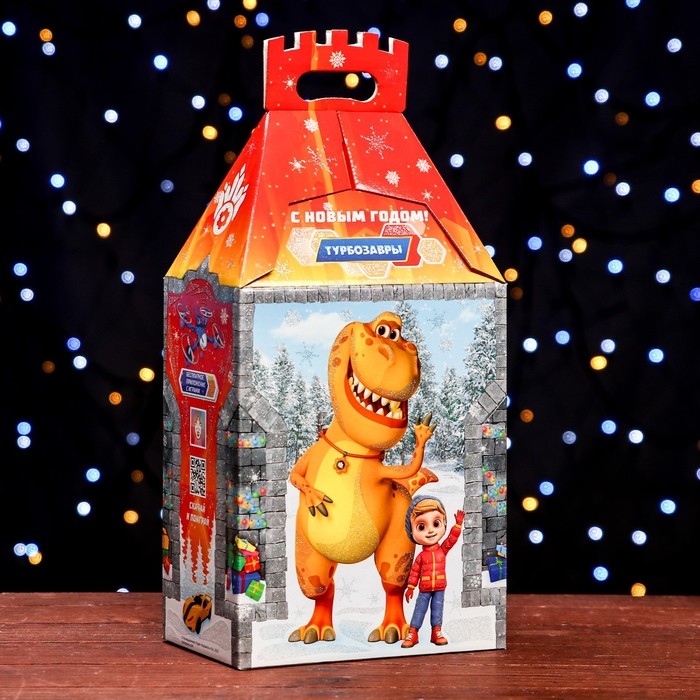Новый год. Подарочная коробка "Турбозавры", Замок , 19 х 11,9 х 35,5 см.