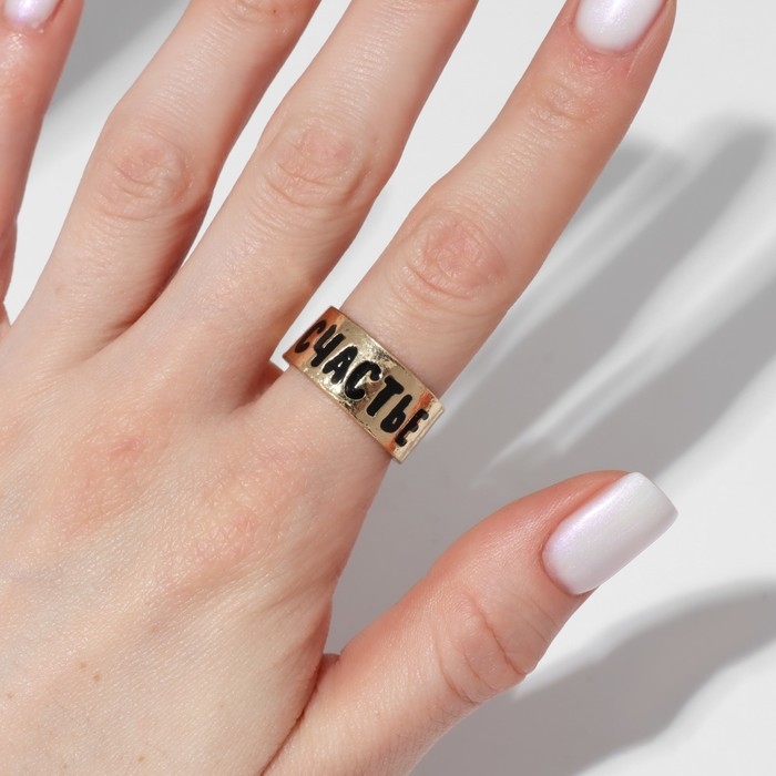 Кольцо с надписью «Счастье», цвет золото, безразмерное
