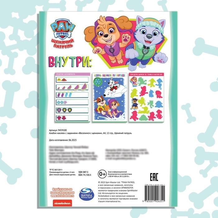 Альбом наклеек с заданиями «Веселимся с щенками», А4, 12 стр., Щенячий патруль