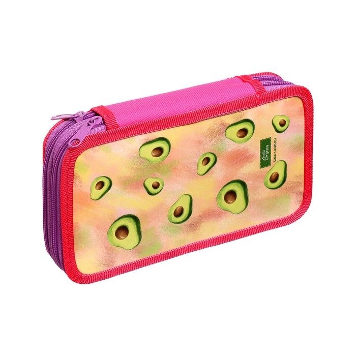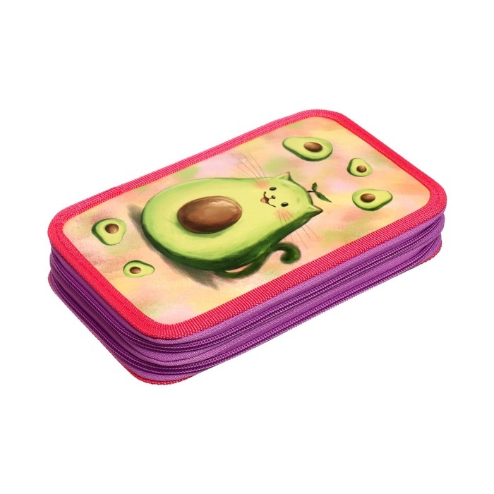 Пенал 2 секции, 125 х 205 х 40 мм, Calligrata 30П26/2 "Авокадо-кот", ламинированный картон