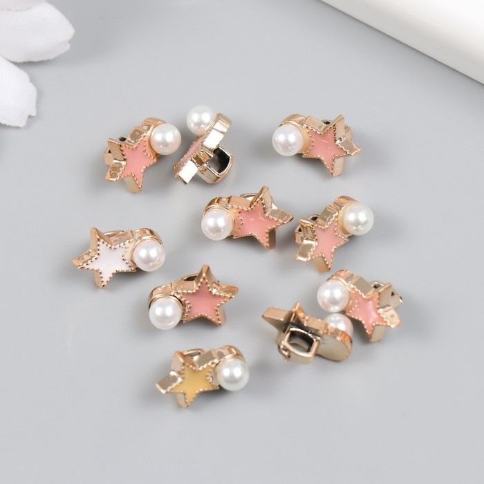 Пуговица пластик для творчества "Звезда с жемчужинкой" набор 10 шт МИКС 1,4х1х0,8 см