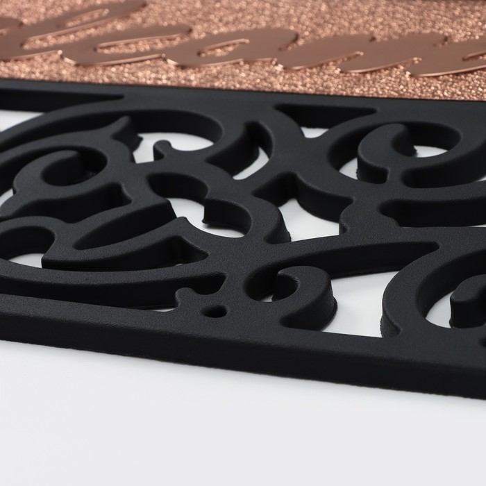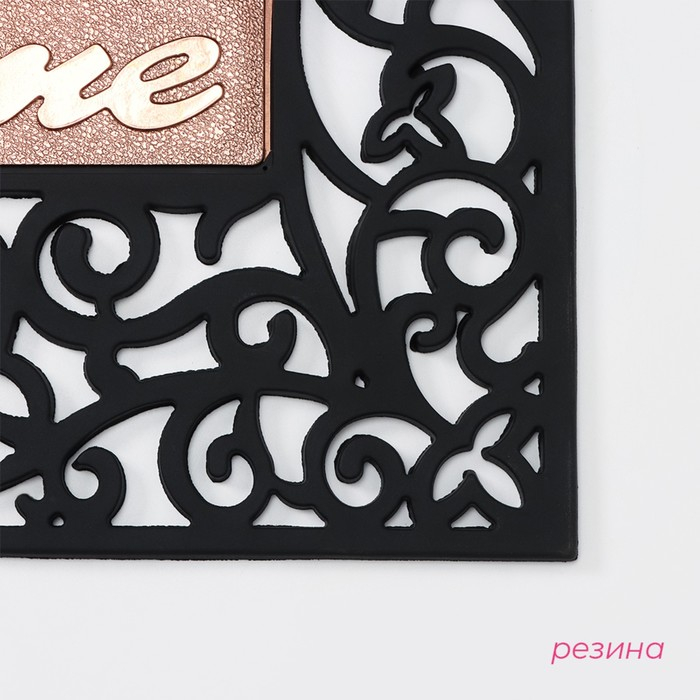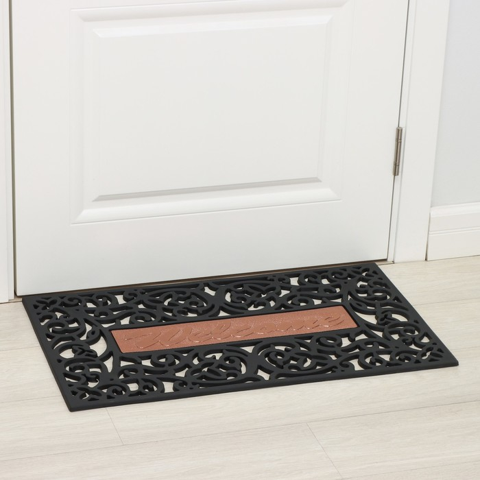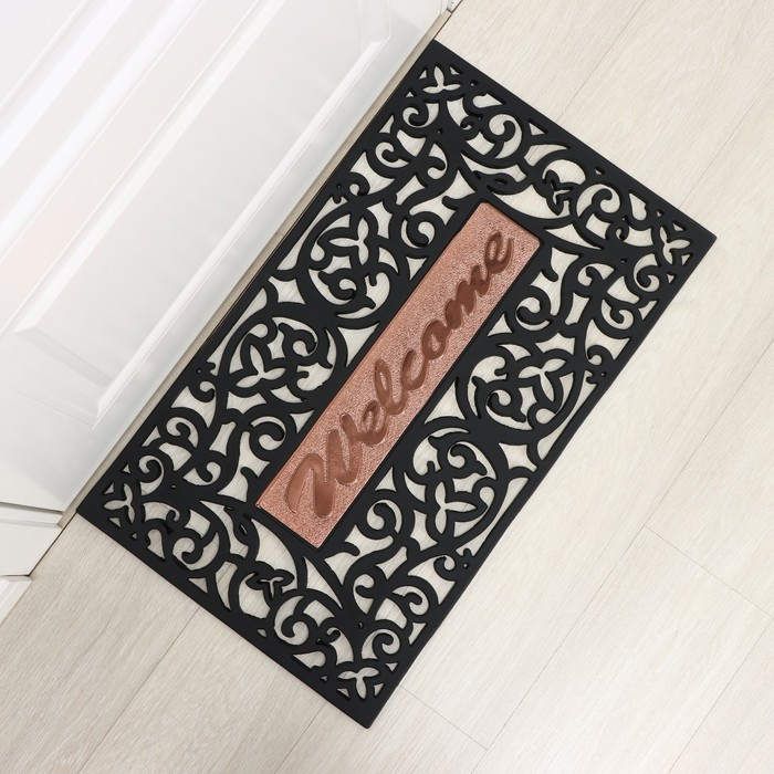 Коврик придверный узорный Доляна «Welcome. Вензель», 45×75 см, цвет чёрный