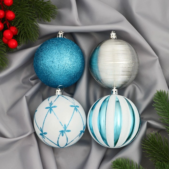 Набор шаров пластик d-8 см, 4 шт "Агнет" узоры, микс