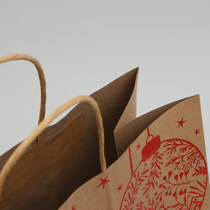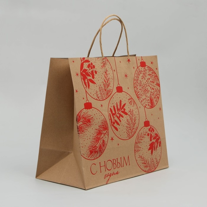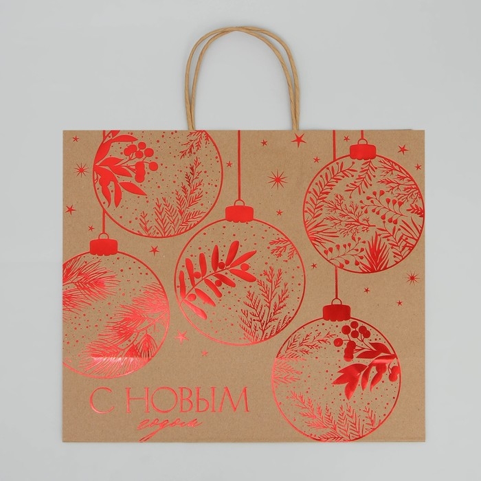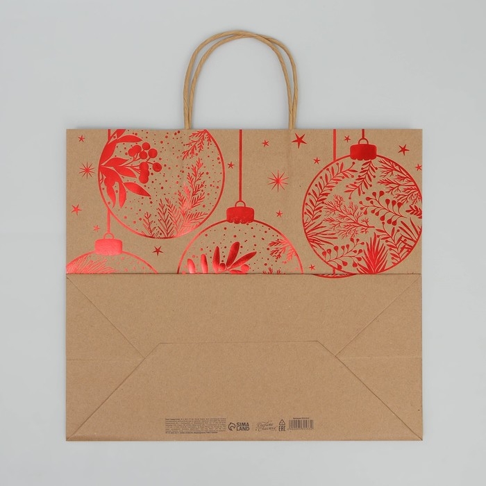 Пакет подарочный новогодний крафтовый Red, 32 х 28 х 15 см, Новый год