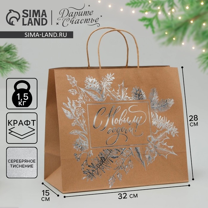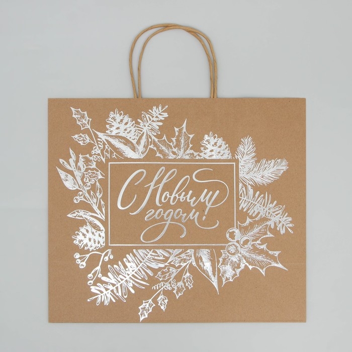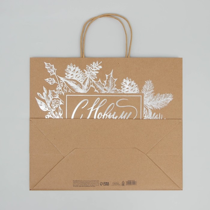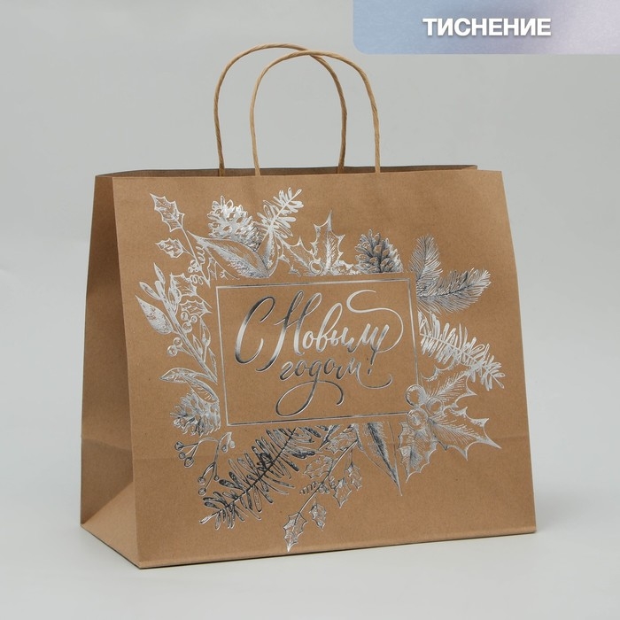 Пакет подарочный новогодний крафтовый «Волшебство», 32 х 28 х 15 см, Новый год