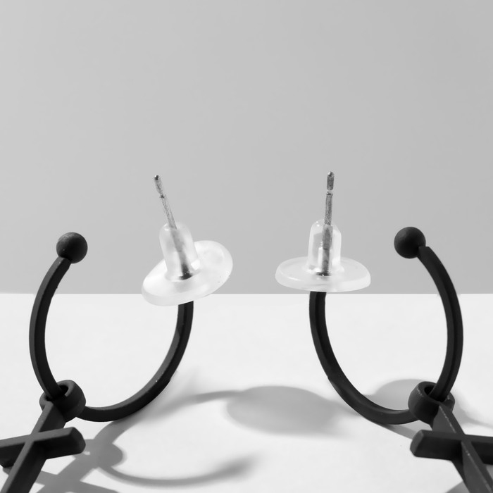Серьги эмаль «Крестик» на кольце, цвет матовый чёрный