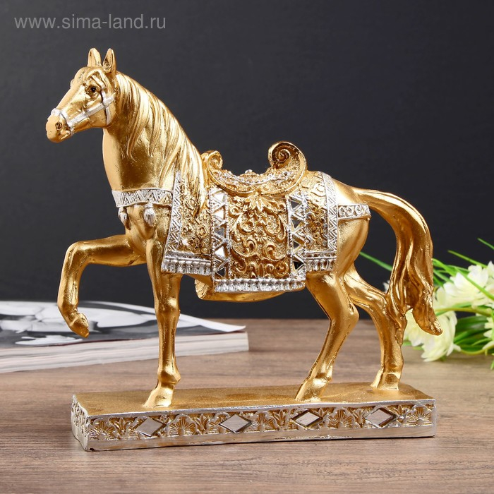 Сувенир полистоун "Золотой конь - аллюр" 17,5х19,5х5,4 см